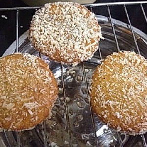 取适量的南瓜粉,压扁,中间放适量的豆沙,包好,压扁,表面蘸上面包糠,冷油入锅