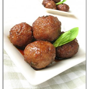 锅内留少许底油,烧热后放入葱姜末和花椒粒煸出香味儿,放入肉圆,倒入少许生抽和老抽,再放入冰糖碎,翻炒上色,倒入少量水和少许盐,转小火,煨煮20分钟,肉圆变得弹牙入味儿,临出锅前放入小油菜焖2分钟,即可。