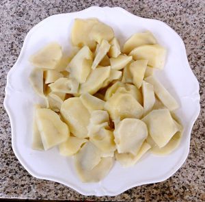 土豆削皮洗净在蒸锅里大火蒸15分钟,蒸至土豆软烂就算好了,从蒸锅中取出晾凉,当心不要烫手哦!