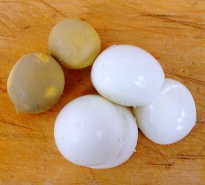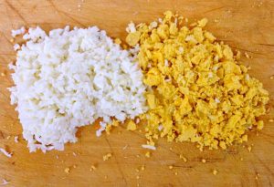 鸡蛋煮好后去皮,蛋清和蛋黄分离