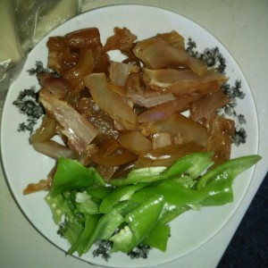 备好菜,二炮辣椒和卤好的牛筋,切成块状