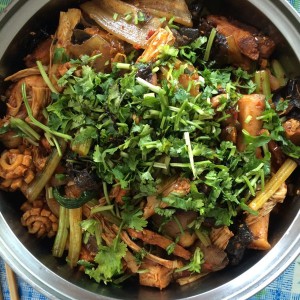 把麻辣香锅底料放入锅中中火炒出香味,放入全部材料翻炒5分钟