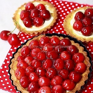 派皮里挤入奶油奶酪,摆上樱桃,即可食用。