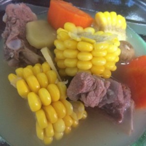 放入玉米胡萝卜,再煮30分钟,放盐调味。关火