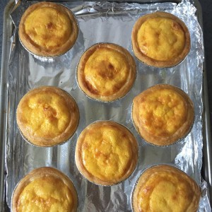 烤箱200度预热上,蛋挞皮微波解冻后摆放在烤盘上,然后每个都加入挞液。放入烤箱25-30分钟。