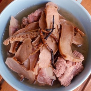 砂锅加清水,排骨,姜片,大火烧开后小火慢炖。加入虫草,松茸,料酒炖至排骨软烂。中途酌情添加开水,汤汁浓白后加盐调味。