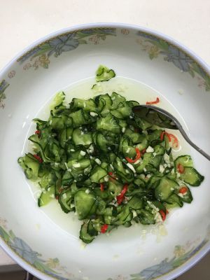 把碗汁和黄瓜搅拌均匀,腌渍片刻(当然时间越长越好吃啦。)