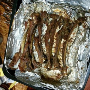 1淹好的羊排用锡箔纸包好,烤箱上下火200度放中间烤40分钟。
