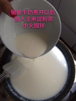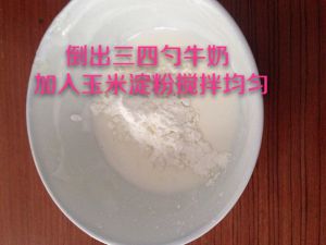 倒出三四勺牛奶,加入玉米淀粉搅拌均匀