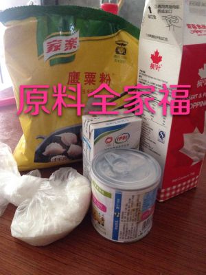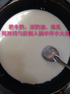 把牛奶,淡奶油,炼乳搅拌均匀倒入锅中煮