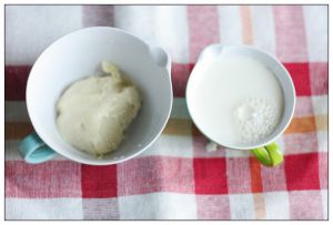 牛奶倒入榴莲肉里。榴莲肉和牛奶事先都冷藏一下,或者搅拌在一起之后再冷藏一段时间再吃。
