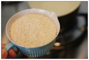 西米按照包装煮至半透明。西米的分量也可以根据自己的喜好增加或减少。