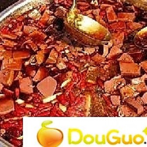 将炒锅放置旺火上,将鸡胸肉,猪肚,猪心,火腿肠放炒锅内加泡辣椒,干辣椒会炒至香,加入少许鲜汤,然后放入牛油,香油,味精,鸡精起锅后盛入炒好做底用的辅料上即成。