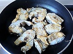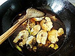 放入煎好的鳕鱼块。