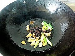 倒入豆豉炒出香味。