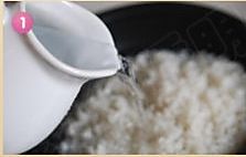 大米洗净,放入容器中,加入清水,米和水的比例=1:1.5。煮开后盖上锅盖,小火约10分钟,蒸煮至7分熟。