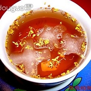另取一锅,放干桂花,将煮好的酸梅汤水倒入,材料留在原锅里。(此为一煎)
