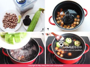 莲子用清水浸泡到体积膨大1倍,灵芝简单冲洗即可。灵芝、莲子、黑豆、葱姜、足量的清水,上汤煲煮沸。转文火煲40分钟。