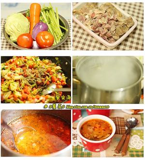 把蔬菜放入牛肉汤里,一起小火再煮2个小时,挑出牛骨,加盐和黑胡椒调味即可。。
