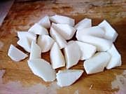 山药洗净去皮,切滚刀块,用沸水烫后捞出